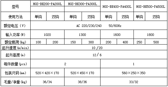 帶急停開關(guān)及強制斷開限位開關(guān),防護等級IP54,帶熱保護裝。